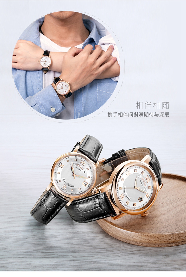 有一種雅致稱為不知不覺(jué),灑脫優(yōu)閑的皮革制品表鏈滿滿的紳士感,優(yōu)雅干凈利索的精剛表鏈無(wú)失優(yōu)美,類似的玫瑰金色邊框是掩藏的戀人原素,誰(shuí)讓大家總是喜歡不張揚(yáng)層次感的人。