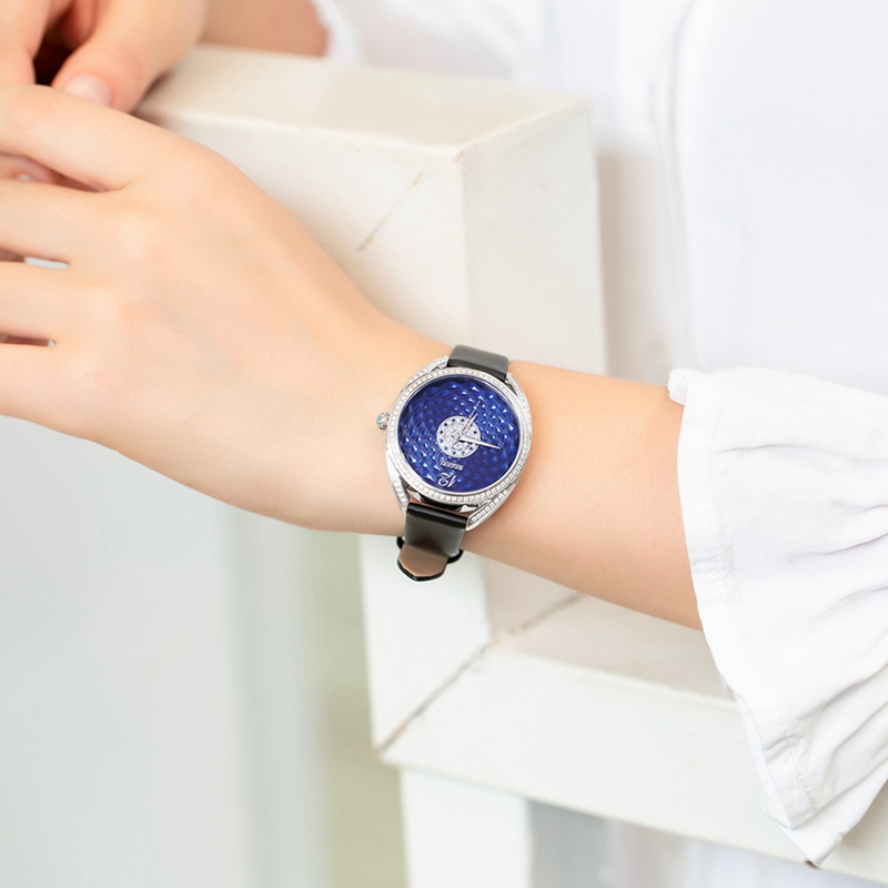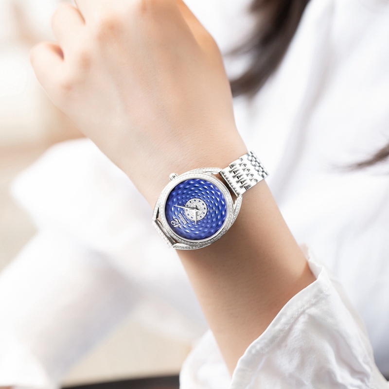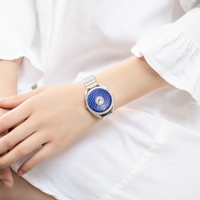 字面:藍(lán)色波浪紋/鑲12顆藍(lán)水晶鉆、24顆水晶鉆