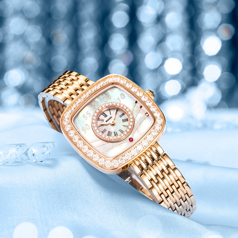 表殼:玫瑰金/鑲石38顆水晶鉆