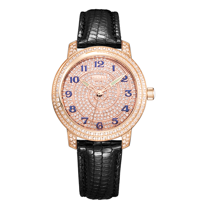 表殼:玫瑰金/螺旋鉆圈口/鑲100粒水鉆