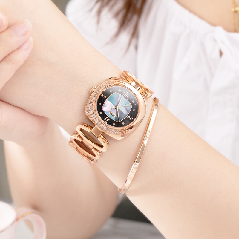 腕間曲線優(yōu)美的表帶猶如音符波動,與腕表上的彎彎月牙巧妙結(jié)合,在舉手投足之間譜出一首高貴典雅的月曲。在堅持精準計時的同時,追求充滿節(jié)奏感與藝術(shù)氣質(zhì)的外形,表盤采用天然質(zhì)地獨特的白色或黑色大溪地珍珠母貝裝飾,8顆真鉆鑲嵌,每一個細節(jié)無一不刻畫月牙美態(tài)。