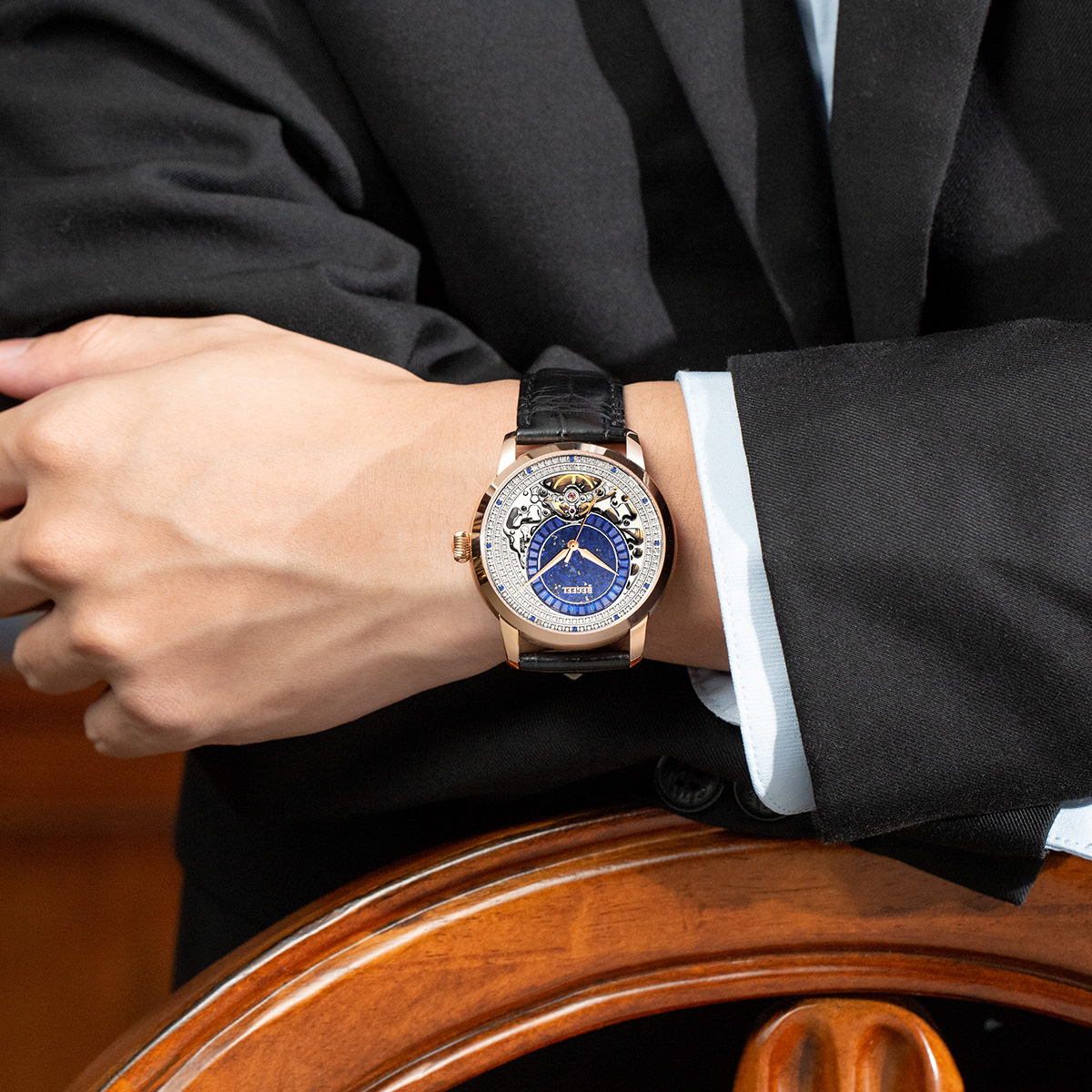 BEGEEL賓爵流金時光男士真鉆機械腕表