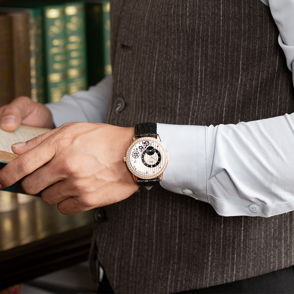 捕捉流變的光與影,黑色圓環(huán)狀表盤,機芯結構設計,就像夜幕下的城市光影背后,給人無限想象,領略不一樣的精彩。腕表摒棄傳統腕表設計,帶來更加強烈的視覺沖擊,表殼的外形線條規(guī)整簡潔,并鑲飾一圈水鉆點綴,奢華中又透出幾分簡單率性的現代氣質,將賓爵機芯的優(yōu)良品質與充滿設計感的表盤,能夠看到齒輪、精巧部件的韻律,讓腕表充滿了機械的魅力。