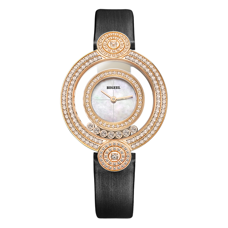 字面: 316L鋼/電鍍玫瑰金, 殼鑲水鉆共204顆,7顆活動水鉆