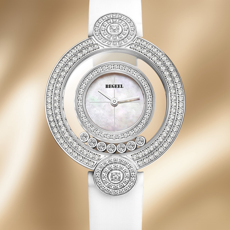 以簡約的線條展示清麗典雅的設計風格,象征繆斯女神的自信與光芒。表盤采用了特有的“鏤空”設計,較小的同心圓為珍珠母貝質(zhì)地,呈圓滿的球型。兩個同心圓環(huán)皆為拋光打造。 兩個圓環(huán)之間、藍寶石水晶鏡面的無形護佑下,七顆靈動水晶鉆如懸空漂浮一般,在流光溢彩的閃爍光華中無盡地回旋、轉(zhuǎn)動。表殼的頂端與底端各綴有一粒單顆水晶鉆,使表殼到豐盈的黑、白色表帶之間的過渡呈現(xiàn)出簡潔、雋永的顯著風格。