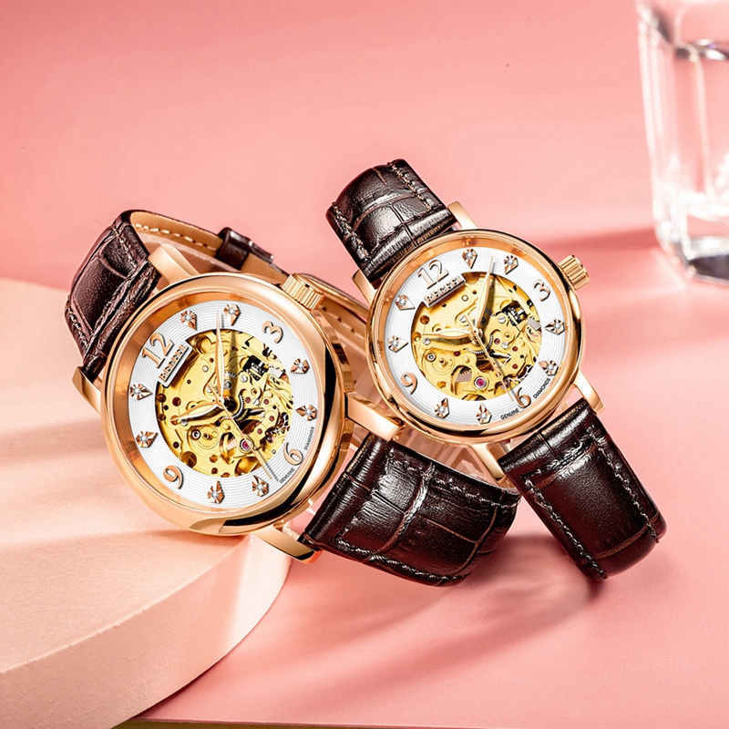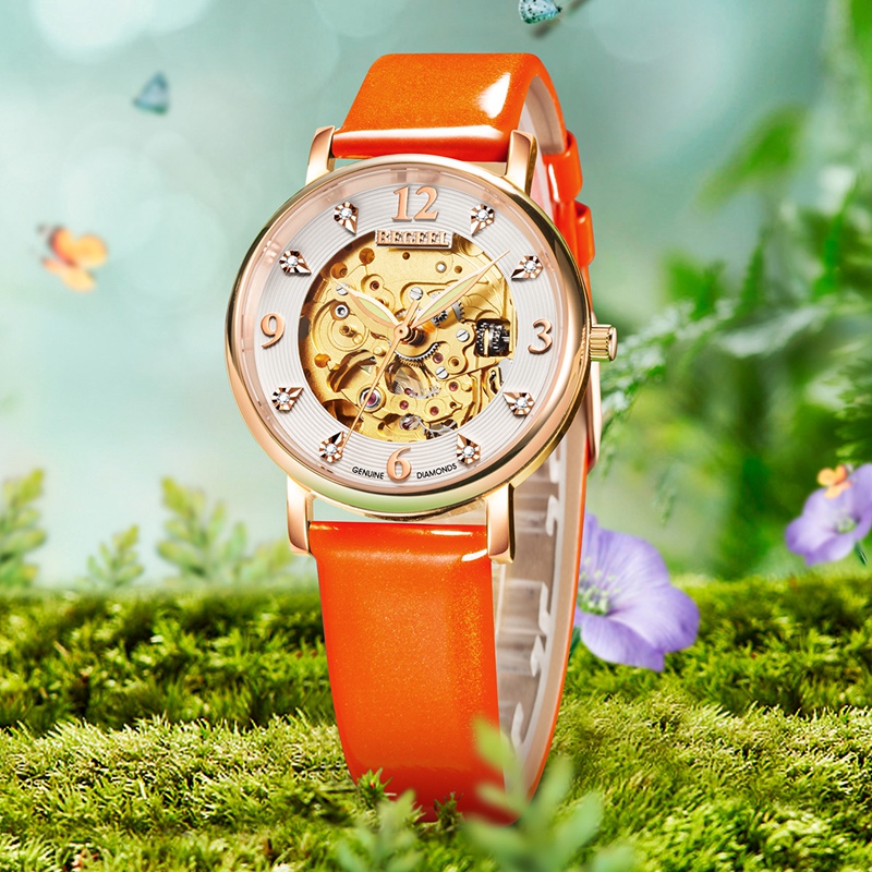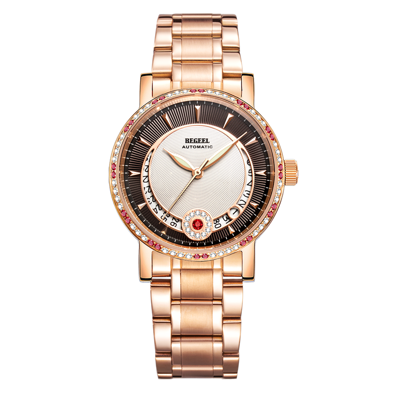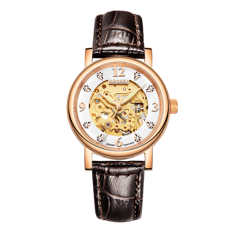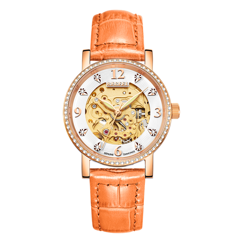 表帶:316L精鋼+電鍍真玫瑰金/電鍍真金/深棕色牛皮/橙色牛皮