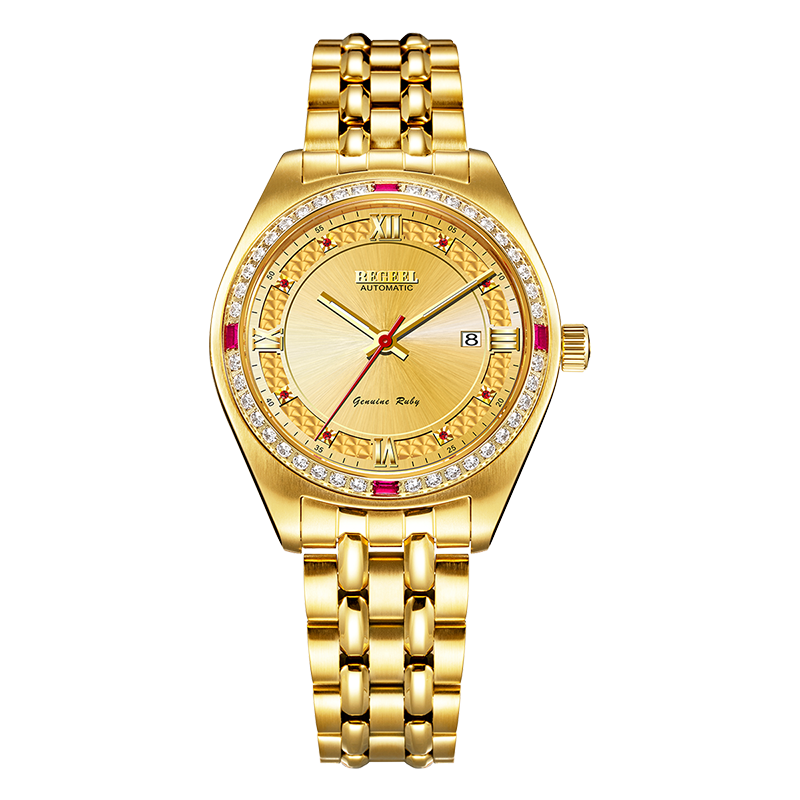 表殼:316L精鋼+電鍍真玫瑰金/電鍍真金