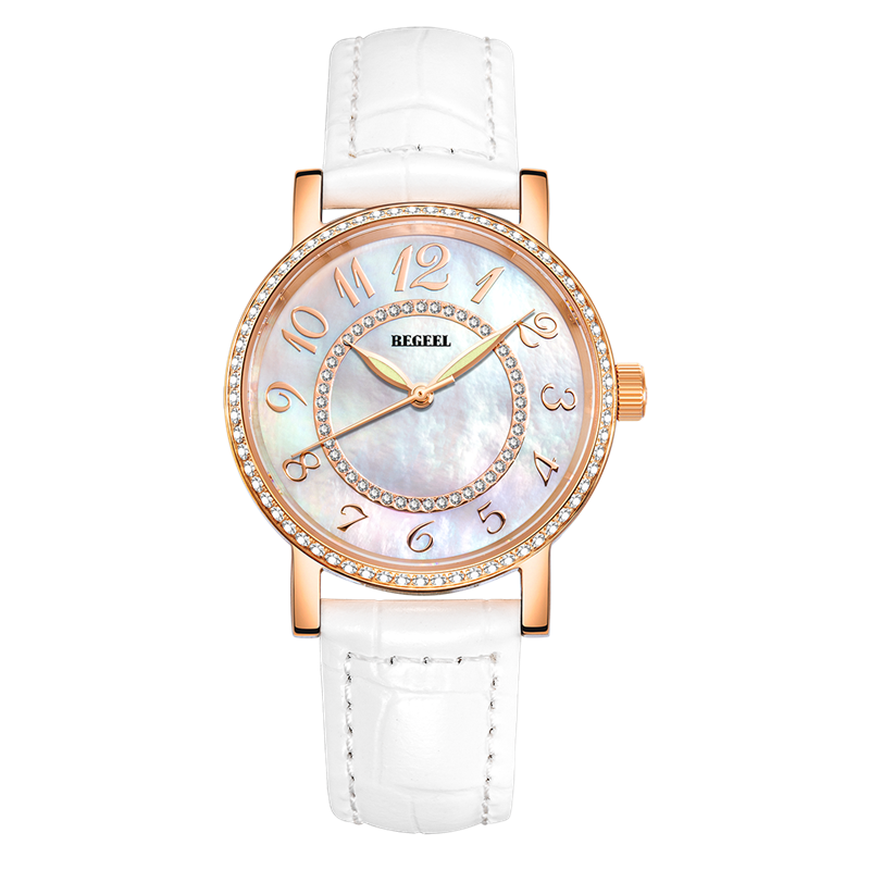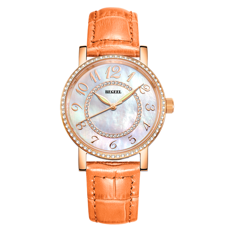 表殼:316L精鋼電鍍玫瑰金,鑲65顆水晶鉆
