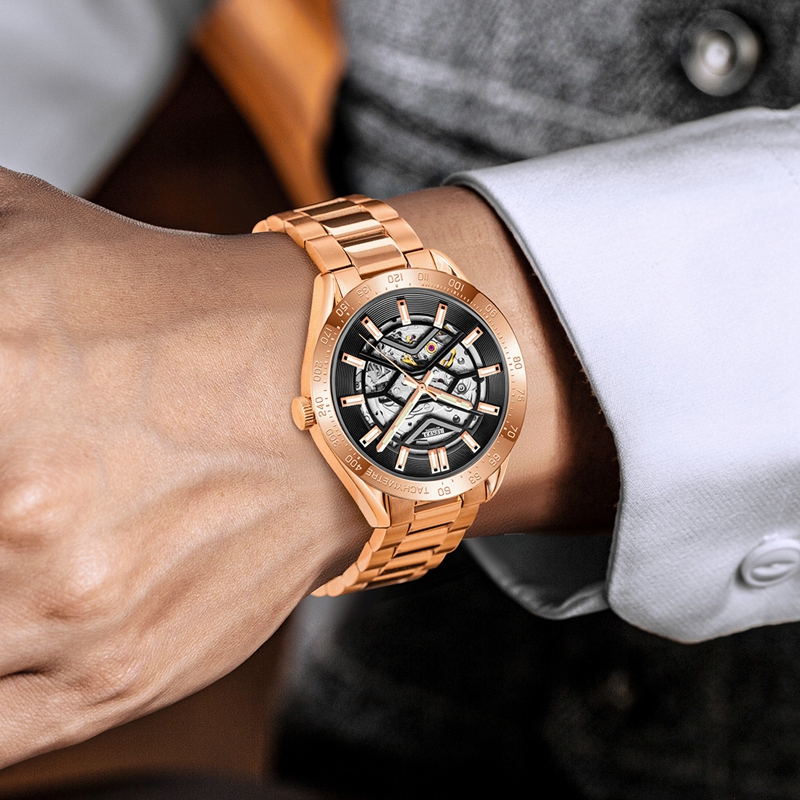 穿越到狼煙四起的戰(zhàn)場,縱橫交錯的雙色鏤空盤面再現(xiàn)漫天火雨的戰(zhàn)爭場面,傳奇雷霆悍將操訓(xùn)百萬雄師鐵軍,個性刻度外圈宛如勇往前驅(qū)的戰(zhàn)車之輪,火線突擊,心中的熱血戰(zhàn)意重燃。設(shè)計師將亂世中的硬漢美學(xué)以匠心鏤空的腕表外觀震撼呈現(xiàn)于大眾面前,再一次勾起人們心底對于和平的敬畏。