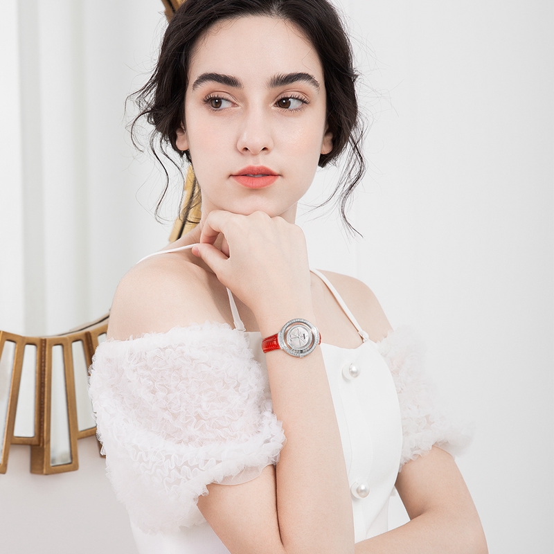 舞蹈藝術(shù)是充滿力量與美的運(yùn)動(dòng),設(shè)計(jì)師由巴黎舞者Sylvie Guillem(希薇·紀(jì)蓮)的舞姿中采擷靈感,將舞者生生不息的律動(dòng)與光影融入腕表設(shè)計(jì)當(dāng)中,讓水晶鉆擺脫了鑲座的束縛,以流動(dòng)的形態(tài)自由地環(huán)繞在表盤的邊緣,一如Sylvie Guillem出神入化的舞蹈靈性,借此創(chuàng)造出抽象而輕靈的腕表風(fēng)格。