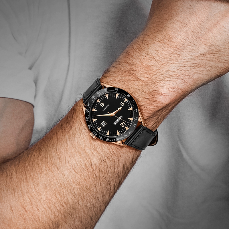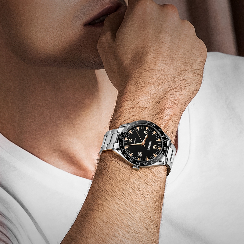 腕表以西方神話中掌管十二星座的圣光天使為設計靈感,采用獨特的神話美學和運動功能特征結(jié)合,將男人征服浩瀚星球的野性,化作時間的力量,腕表整體風格利落狂放,鋒芒盡顯,黑色表盤搭配銳利的米色三角刻度,于圣堂光影之中彰顯男性灑脫的沖鋒氣質(zhì),游走寰宇,征戰(zhàn)無限。