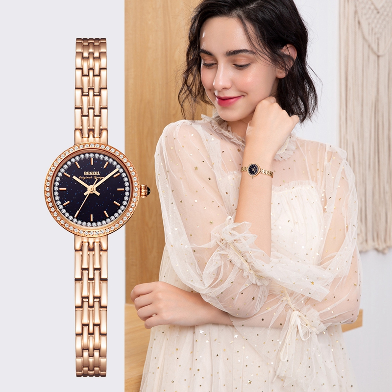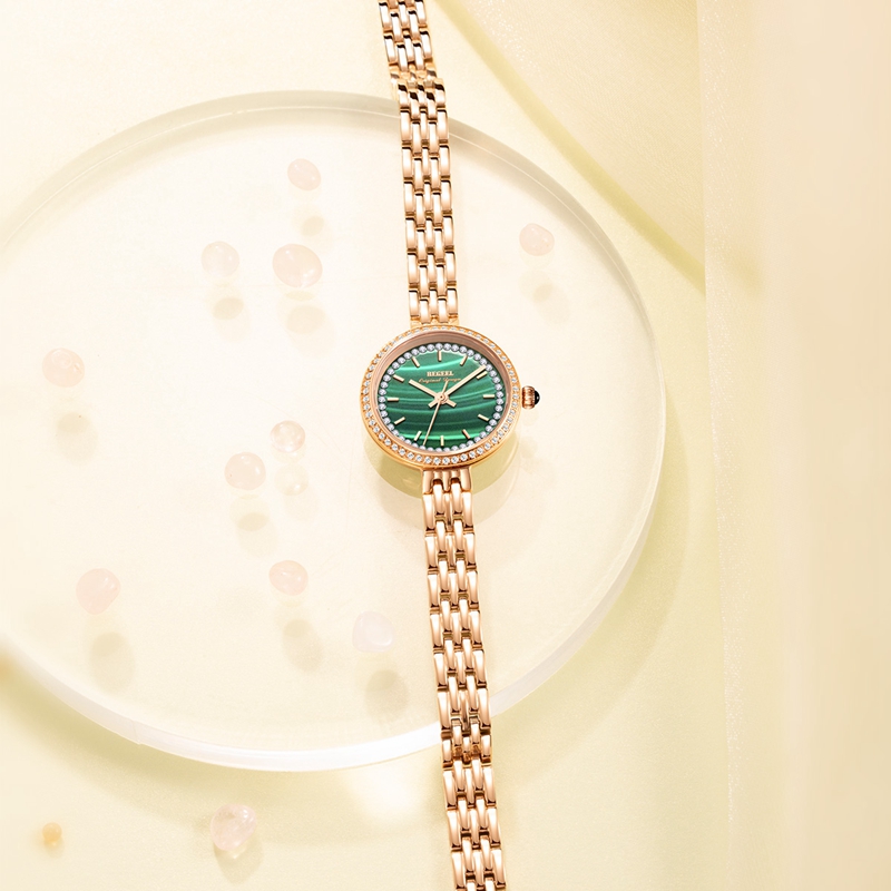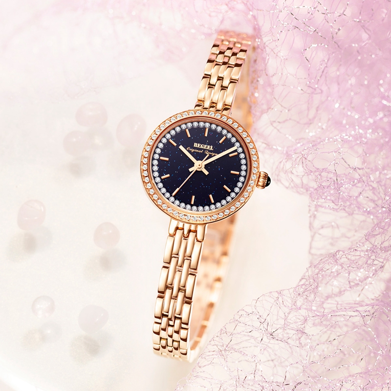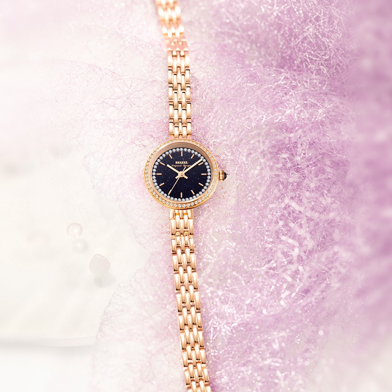 表殼:316L鋼+電鍍玫瑰金,鑲52顆水晶鉆