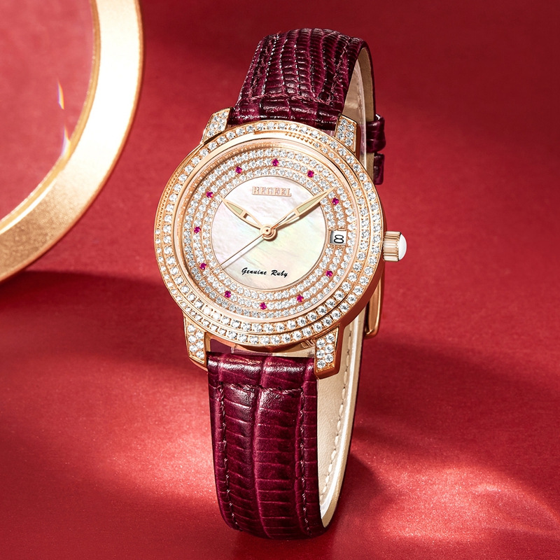 字面:貝殼面鑲11顆真紅寶石刻度,鑲約160顆晶鉆