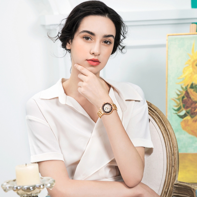 表殼:316L精鋼+電鍍真玫瑰金,表殼紅色水晶鉆24顆,白色水晶鉆約36顆