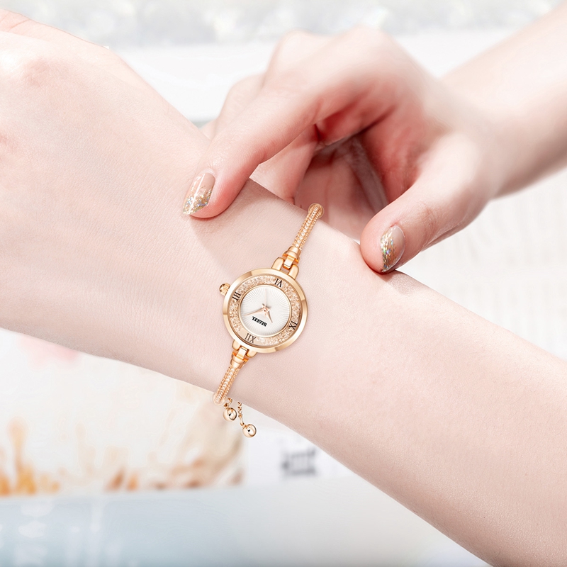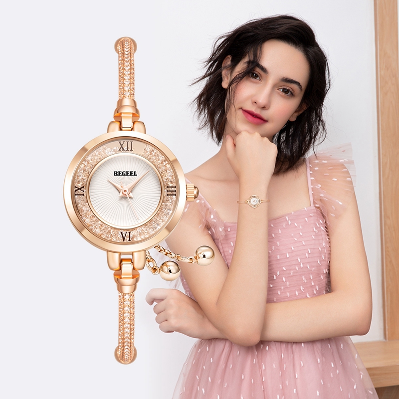 表殼:電鍍玫瑰金,流動(dòng)水晶鉆