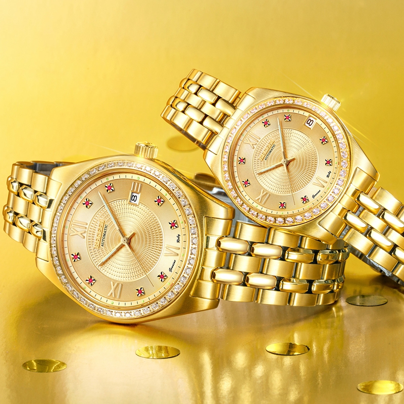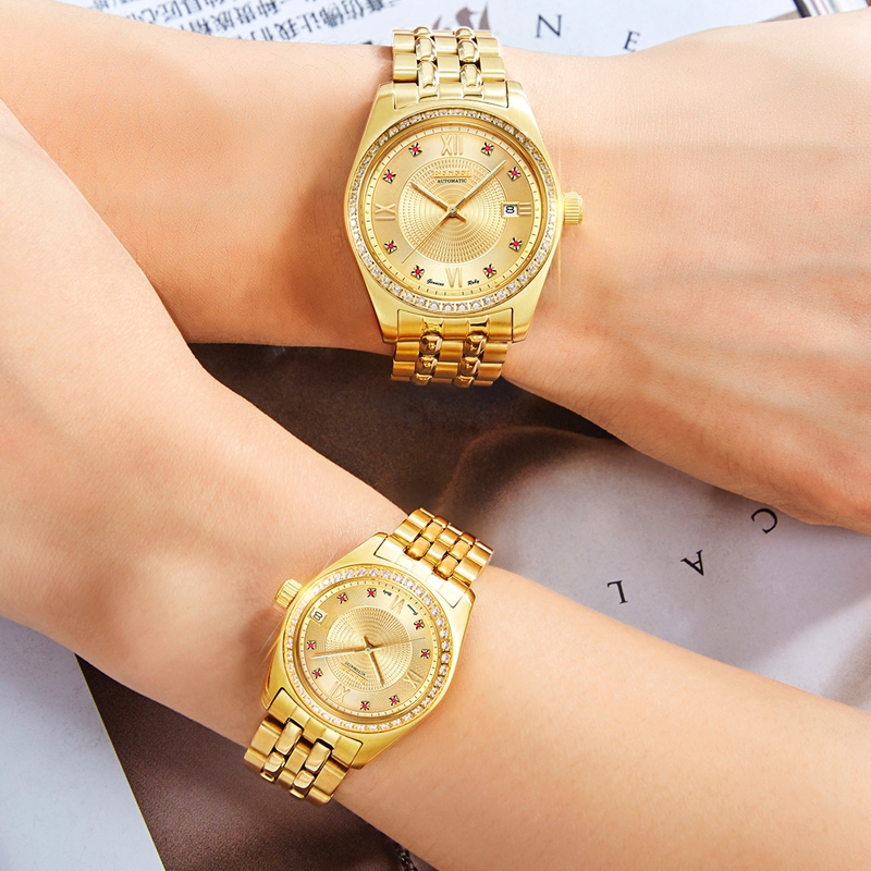 表殼:男表鑲約46顆晶鉆,女表鑲約40顆晶鉆