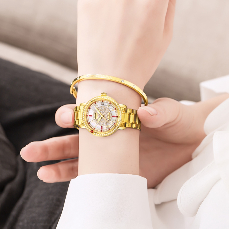 表殼:電鍍金+1顆合成大紅寶石+鑲57顆水晶鉆