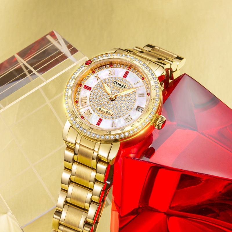 限量|BEGEEL賓爵快樂大紅寶女士機(jī)械腕表
