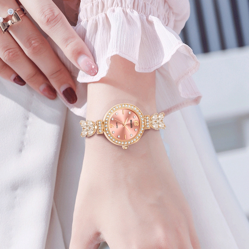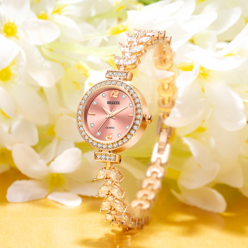 表殼:電鍍玫瑰金,鑲44顆晶鉆