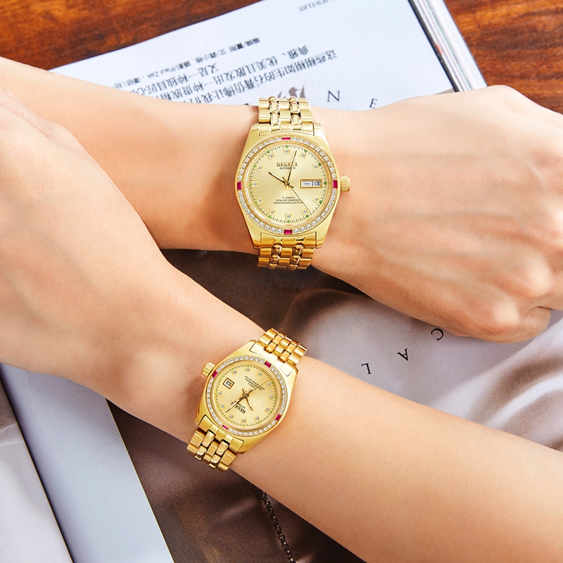 表殼:紅鉆圈:316L精鋼+電鍍真金,男款鑲40顆晶鉆, 4顆紅方晶鉆,女款鑲36顆晶鉆, 4顆紅方晶鉆