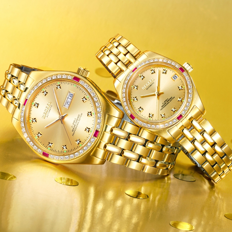 時光是愛情最動人的注解。時光易老,所幸仍有愛情歷久彌新,在年華流轉間散發(fā)出愈發(fā)堅定迷人的味道。人生的不同階段,愛情擁有不同顏色,春心萌動時,滿眼粉紅,夢幻而青澀;兩心相許時,情濃意濃,仿佛紅色般濃烈醉人;幾十年的風雨過后,相依相伴的愛情變成了金色,金色,高貴而輝煌的顏色,代表著成熟與收獲,雖不及紅色的濃烈鮮艷,卻有著自己獨特的魅力。制表師從金色愛情中汲取靈感,將愛情最美的顏色鍍于表體,見證我們的分分秒秒。