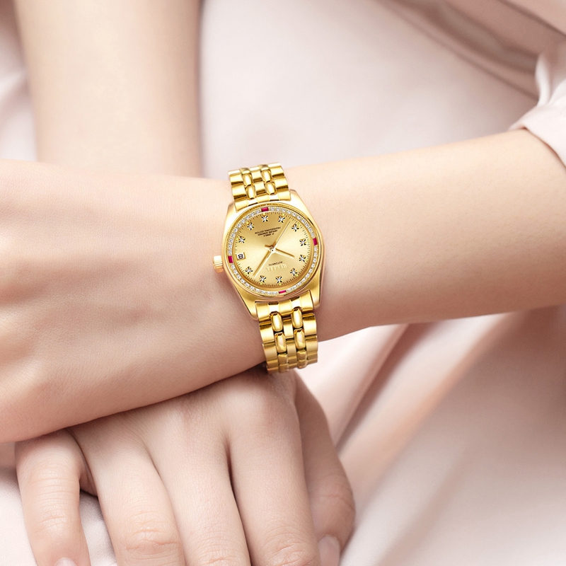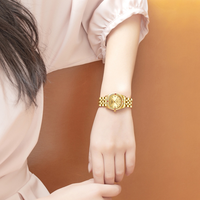 表殼:316L精鋼+電鍍真金,鑲36顆晶鉆, 4顆紅方晶鉆