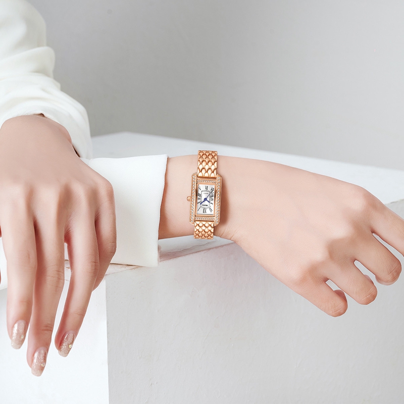 表殼:電鍍玫瑰金,鑲52顆晶鉆