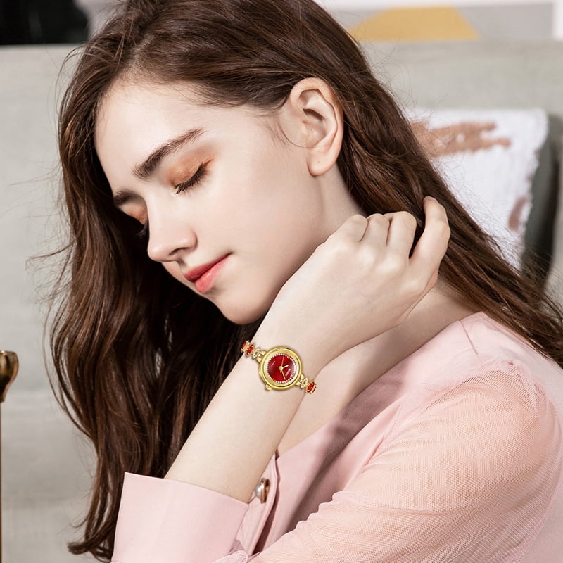 字面:胭脂紅面,鑲32顆晶鉆,3針設(shè)計(jì)