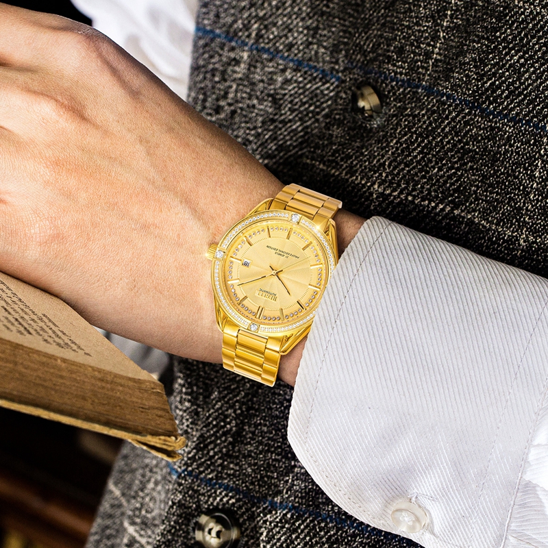 表殼:316L精鋼,電鍍金,光圈/金寶鼎圈口鑲約80顆晶鉆/福星圈口鑲約60顆晶鉆
