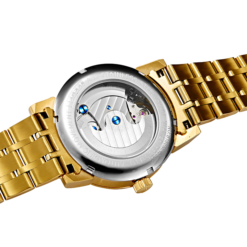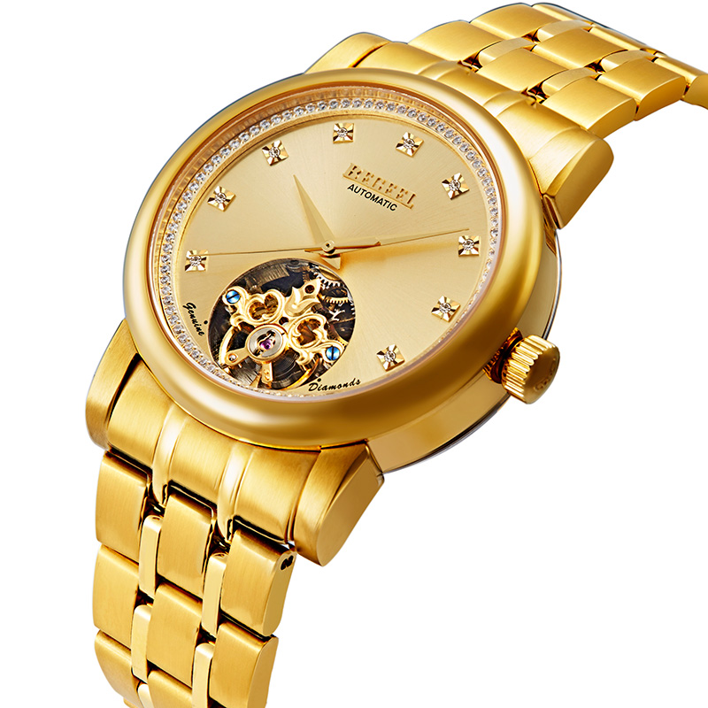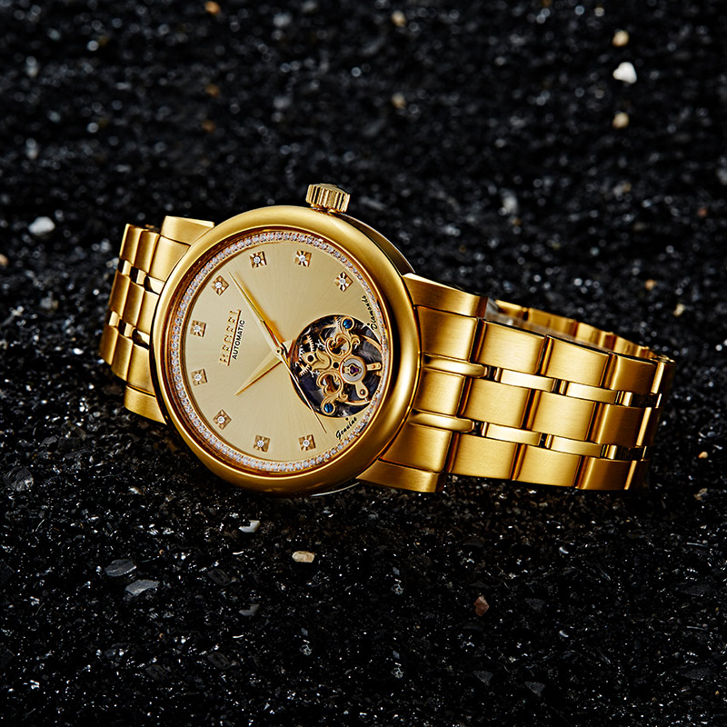 太陽紋表盤,細膩打磨的太陽紋表盤,紋路細膩有光澤,從任何角度都能釋放出耀眼的太陽光芒,時刻吸引他人注目。9顆天然真鉆鑲嵌于時標鉆托之上,釋放耀眼光芒,明證時間的彌足珍貴。6點位開窗設計,可清晰地欣賞機芯游絲的飛速運轉,完美呈現(xiàn)機芯的精華部分,正面感受機械運轉的力量感。