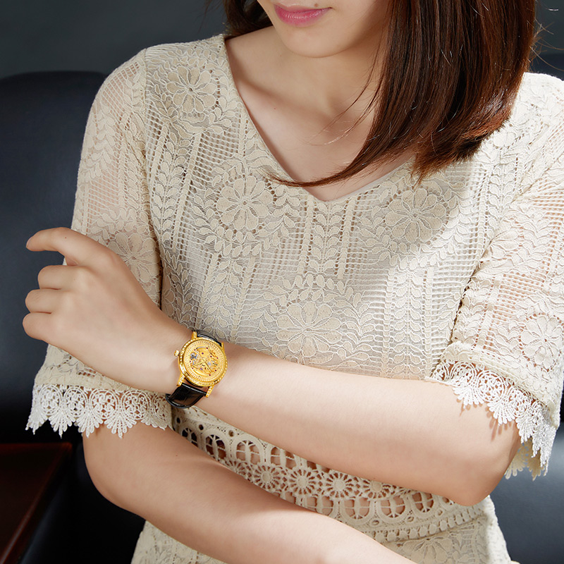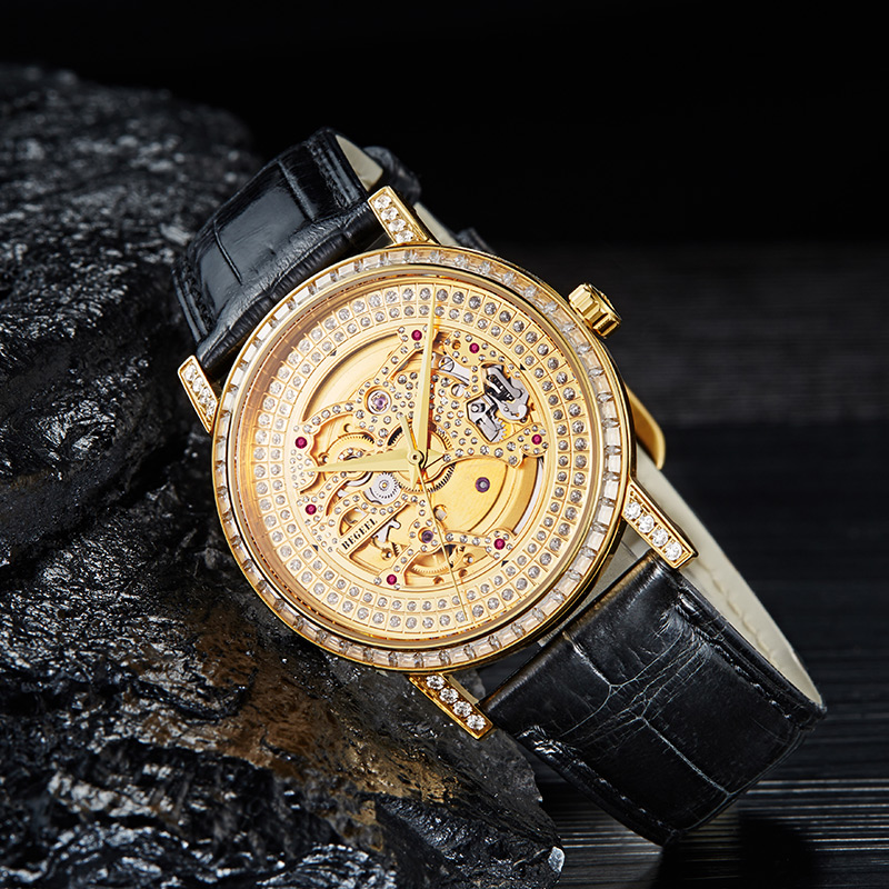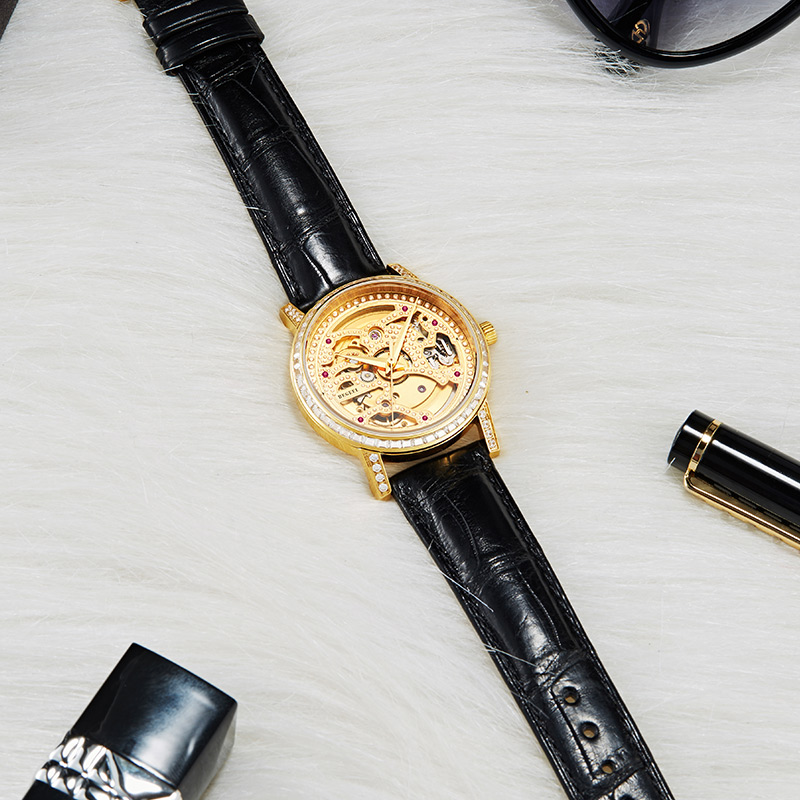 腕表吸收了古典工藝設(shè)計(jì)靈感,以完美的鏤空手工雕花全鏤空設(shè)計(jì)展現(xiàn)唯美浪漫情懷,獨(dú)特滿(mǎn)天星全鏤空表盤(pán),表橋紅寶石的點(diǎn)綴簡(jiǎn)直是錦上添花;與表圈上璀璨的美鉆互相輝映,精湛技藝與優(yōu)雅造型的完美結(jié)合,在陽(yáng)光下折射出愛(ài)情璀璨的光芒,宣告此生情比金堅(jiān),宛如綻放的金色玫瑰,永不凋零。